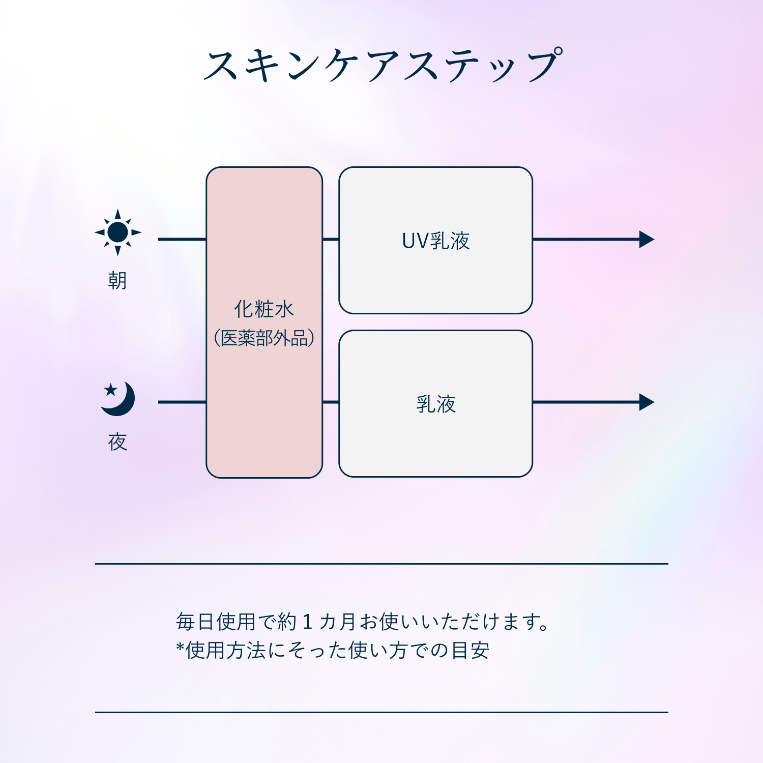 薬用美白化粧水。メラニンの生成を抑え、シミ・そばかすを防ぐ。