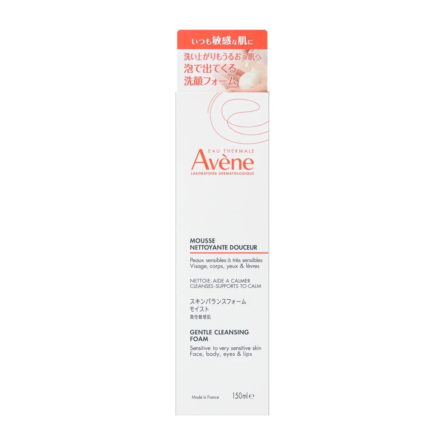 洗い上がりもうるおう肌へ。泡で出てくる洗顔フォーム。敏感な肌をアベンヌ温泉水*で洗う、うるおいつづくエアリー泡洗浄。