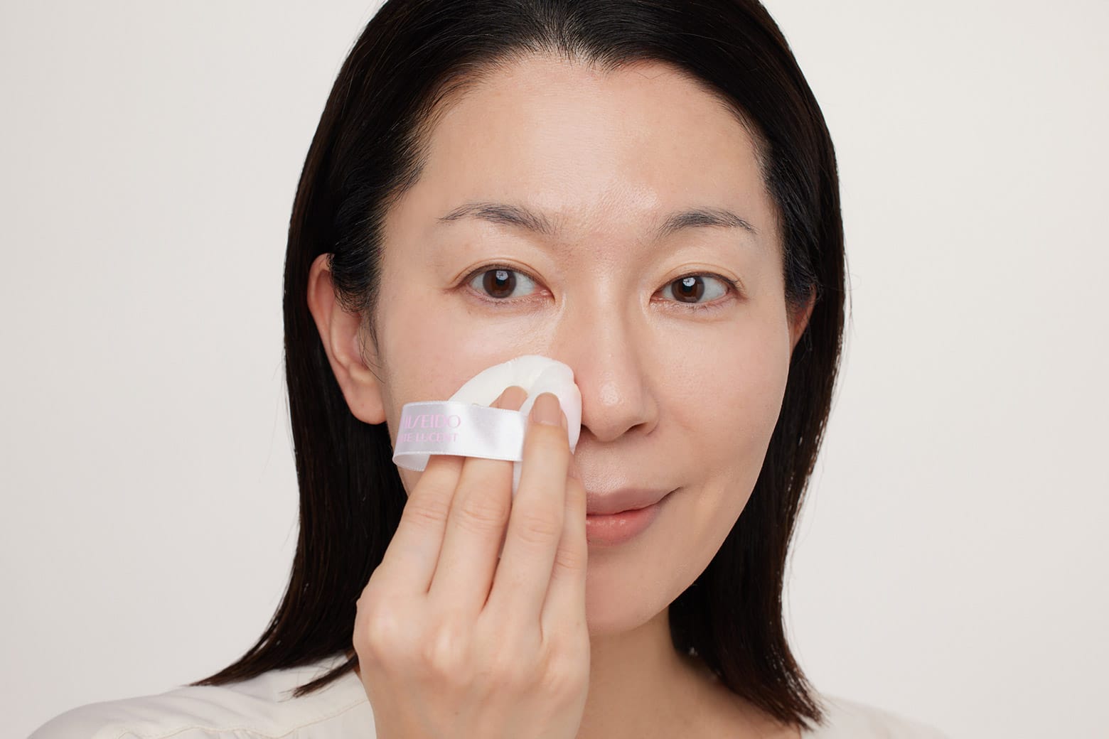 ほおやフェイスラインは、パフをすべらせるように塗ると、ふわっと軽く仕上がります。