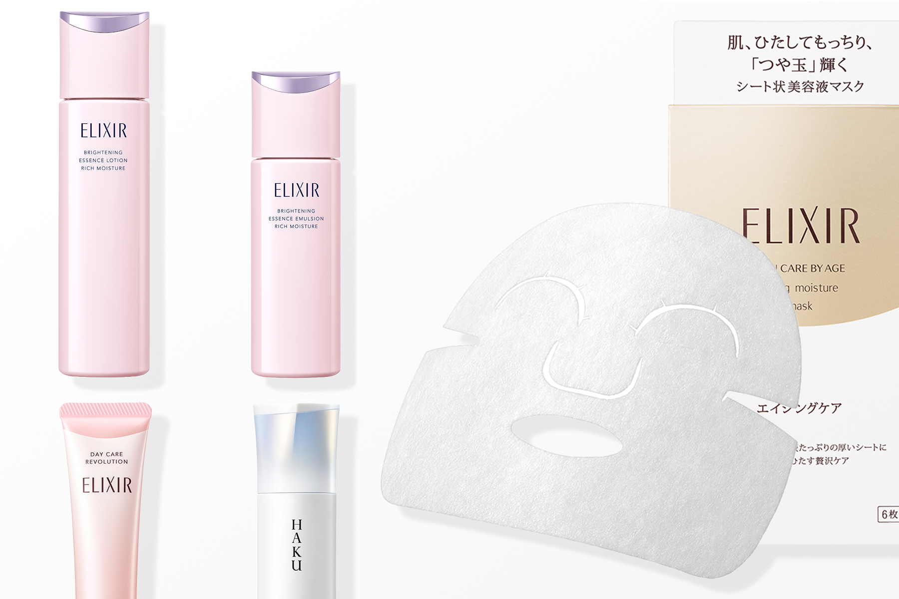 美白有効成分*配合のエリクシール ホワイトの化粧水と乳液は、素肌そのものが発光しているかのように、うるおいで光をきれいに反射する肌に整えることで、透明感とハリのある肌へと導いてくれます。