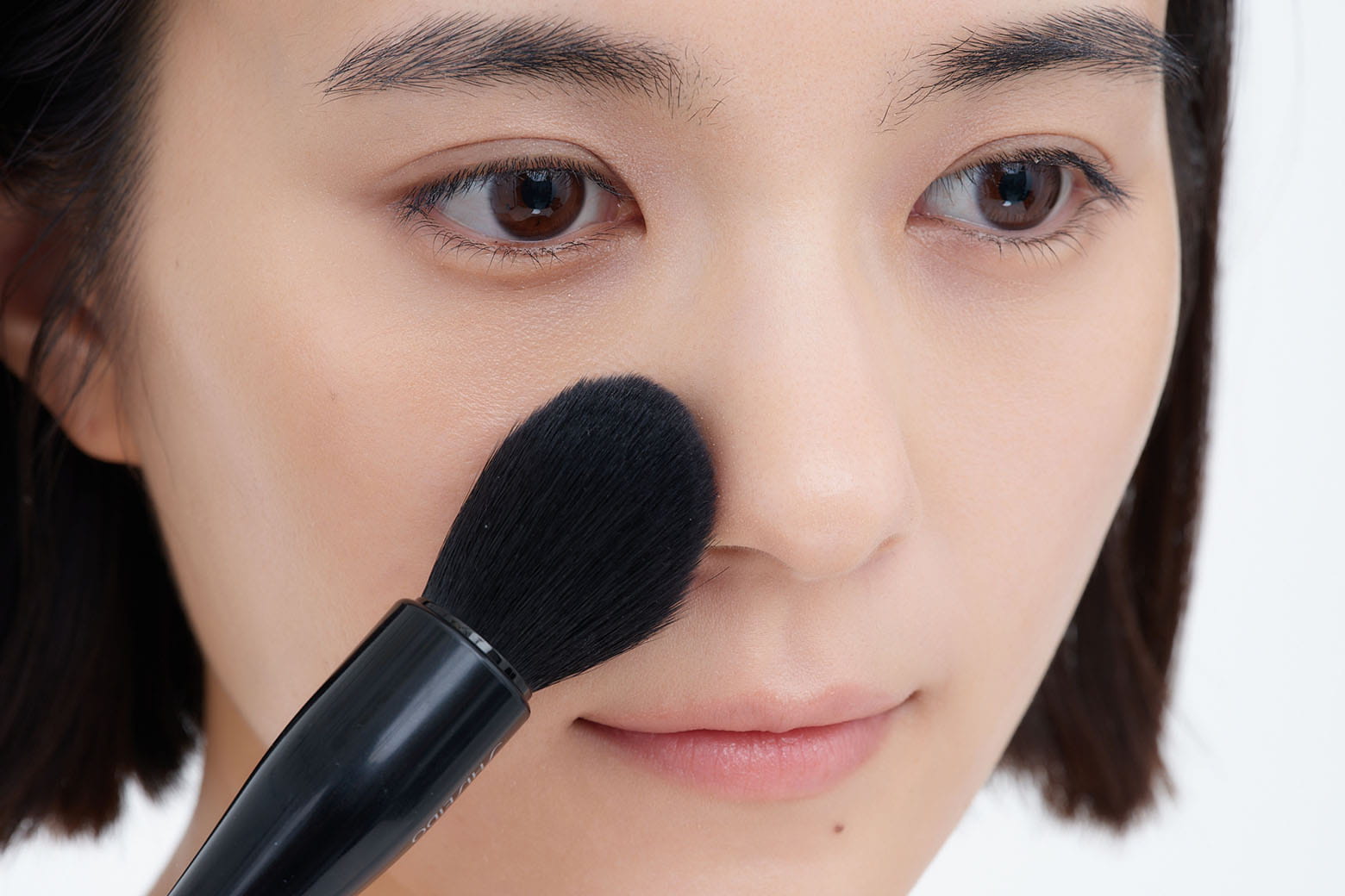 顔全体には塗布せず、SHISEIDO メーキャップ MARU FUDE マルチ フェイスブラシ で小鼻などテカりやすいパーツだけにふんわりと塗布すると、他のパーツの乾燥を防ぐことができます。