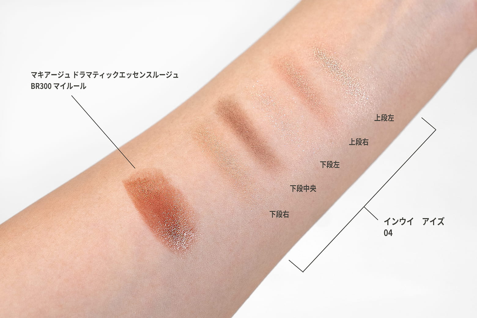 おすすめのアイシャドウはインウイ アイズ 02、リップはマキアージュ ドラマティックエッセンスルージュ PK700 飾らない主張。
