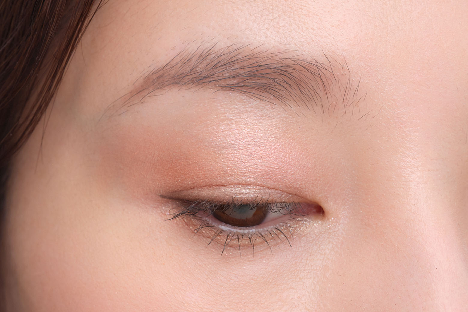 アイシャドウは、繊細なパール感のある、ナチュラルなカラーをチョイスして、つやと立体感を高めて。