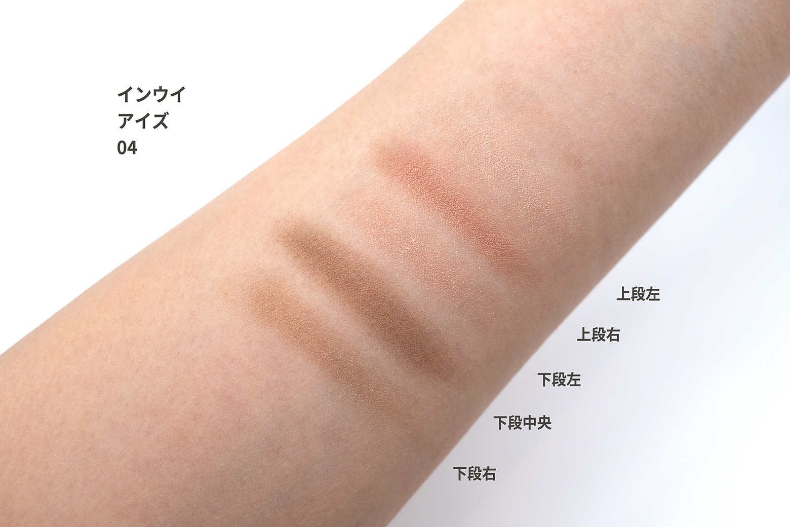 美しいグラデーションを簡単につくれるインウイ アイズ 04は、コーラルカラーとブラウンの5色パレット。