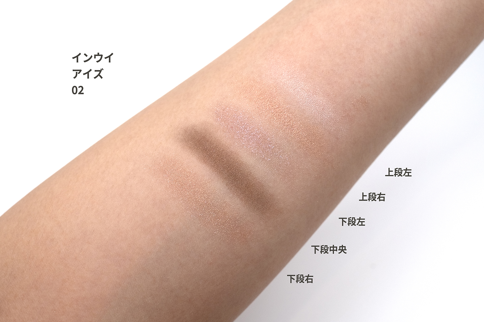 ベージュやブラウン、そしてラベンダーなど青みのある5色を備えたインウイ アイズ 02は、落ち着いたトーンで使いやすい、ブルべさんの万能パレット。