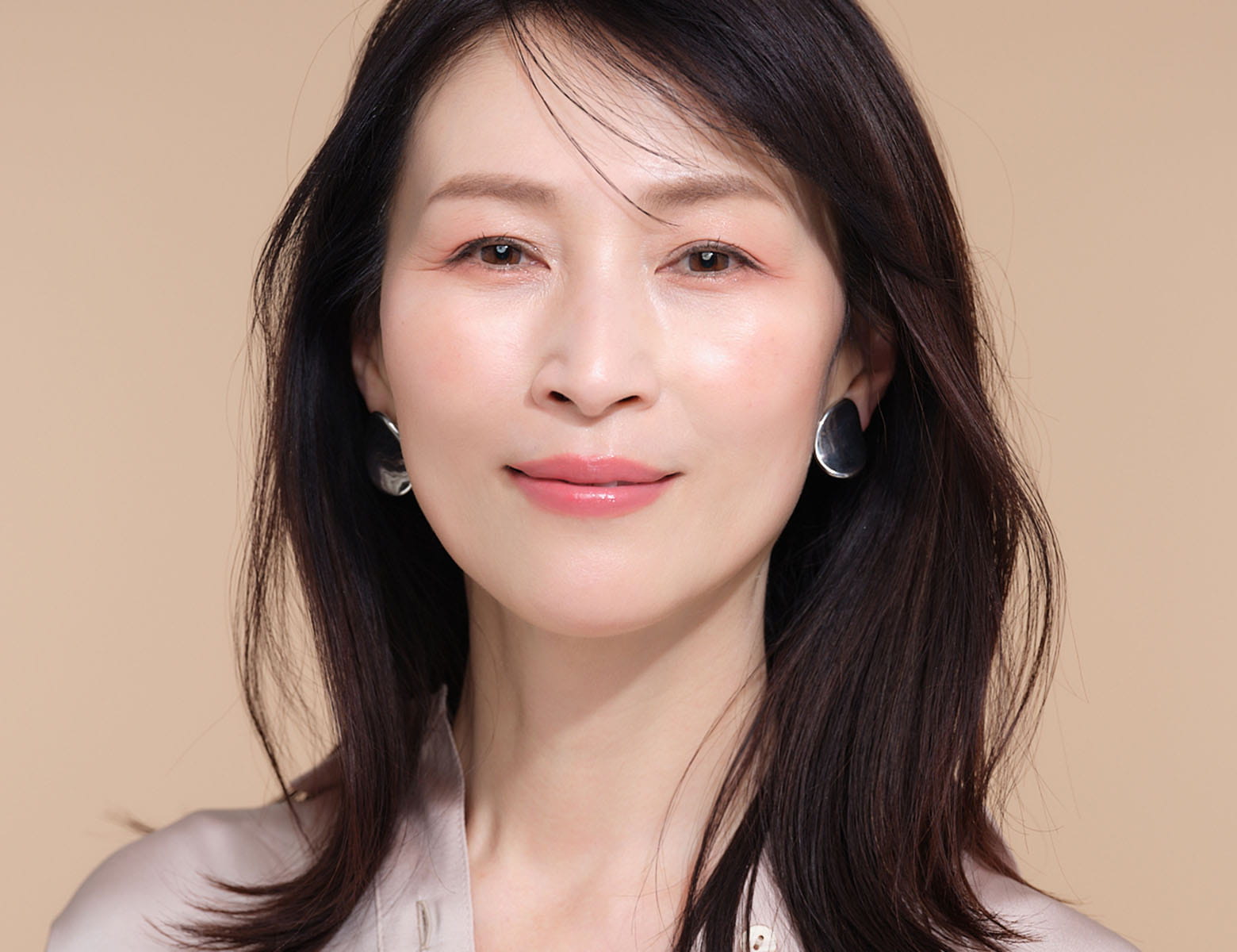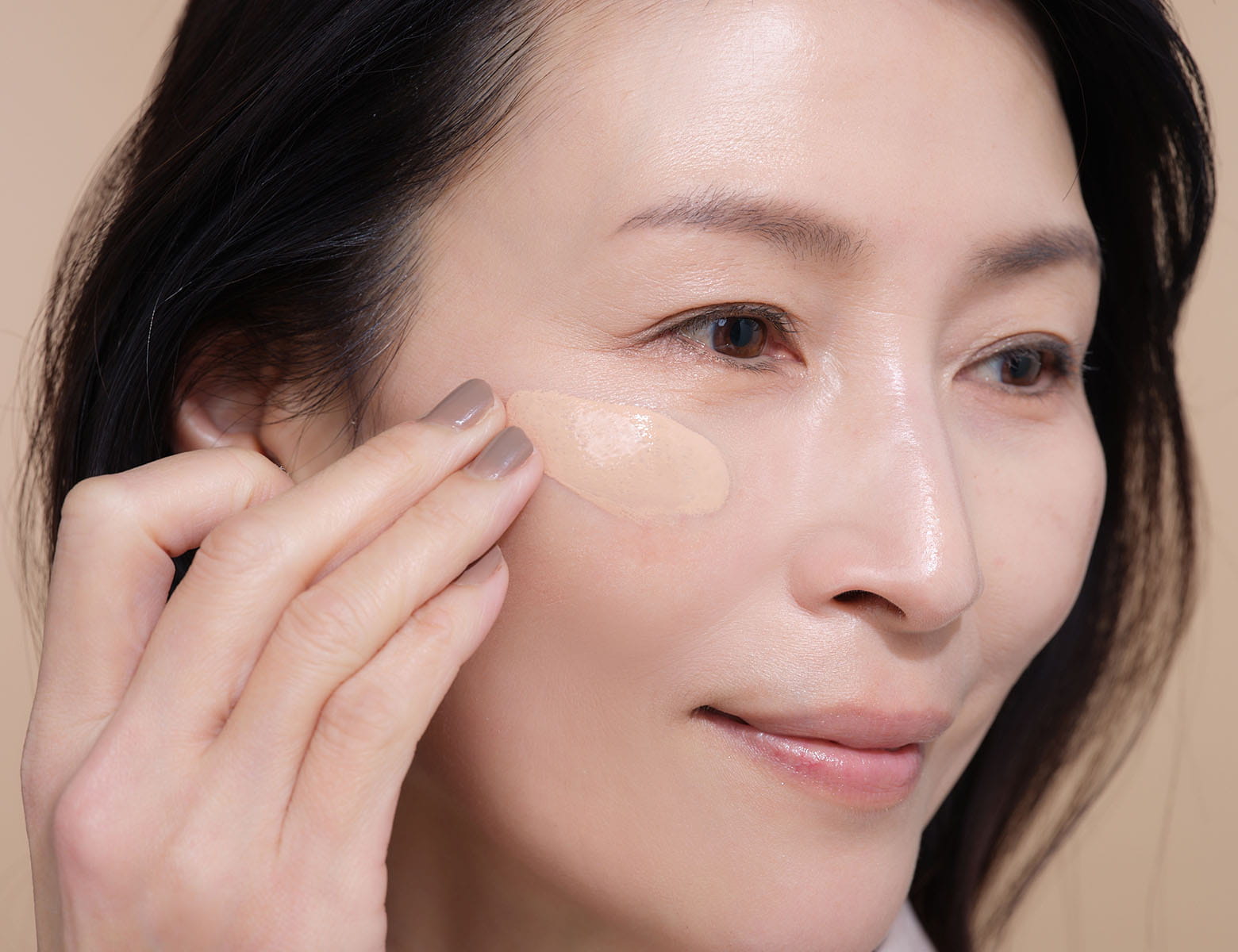 透明感はもちろん、ほんのりピンク色の血色感のある肌は、大人のくすみ対策にもぴったり。