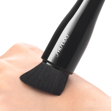 斜めカットで細かな小回りもきく、多才なファンデーションブラシ。リキッド、クリーム、パウダー、クッションなど、あらゆるタイプのファンデーションに使用でき、パーフェクトな肌に仕上げます。フラットな面が肌にぴったりフィットし、ファンデーションをムラなく仕上げます。熊野筆の技術を用いた筆職人による手作りです。肌触りにこだわった人工毛を使用しています。