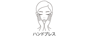 3回目(0.5mL)を顔に塗布して、●再度、化粧液を手のひらに適量とり両手のひら全体へ広げます。●軽く圧をかけながらハンドプレスでしっかりとうるおいを肌に入れ込むように。
