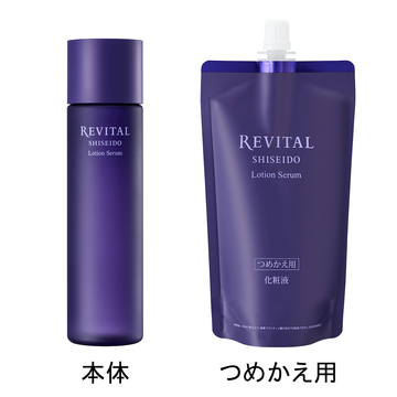 リバイタル ローションセラムのつめかえ用です。必ず、リバイタル ローションセラムの【つめかえに対応した本体容器】につめかえてから、ご使用ください。●洗顔の後、手のひらをくぼませ適量をとり、手のひら全体に広げます。●両手のひらで顔全体に広げます。●手のひら、または指全体で軽く圧をかけながら、なでるようにゆっくり手を動かしマッサージします。1~3の動きを数回繰り返します。1. 指全体であごに3回円を描きます。2. 手のひらでほおに大きく3回円を描きます。3. 手のひらで目の下から額に向かって、大きく3回円を描きます。