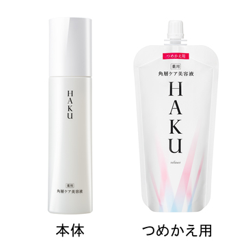 HAKU リファイナーのつめかえ用です。必ず、HAKU リファイナーの【つめかえに対応した本体容器】につめかえてから、ご使用ください。美白美容液を使用する時は、本品を先にご使用いただくことをおすすめします。