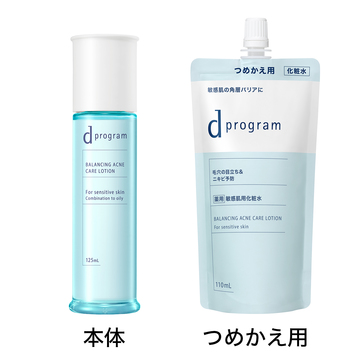 ●必ず、d プログラム バランス&アクネケア ローション EXの本体容器につめかえてから、ご使用ください。●朝・夜の洗顔の後、手のひらに500円硬貨大をとり、円を描きながら手のひら全体に広げます。