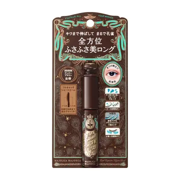 孔雀の羽をひろげたように、ふんわりフサフサで上向きカール。キワのまつげまで伸ばしつくすことで、目幅を拡張。美しい長いまつげが長時間*続くマスカラ。